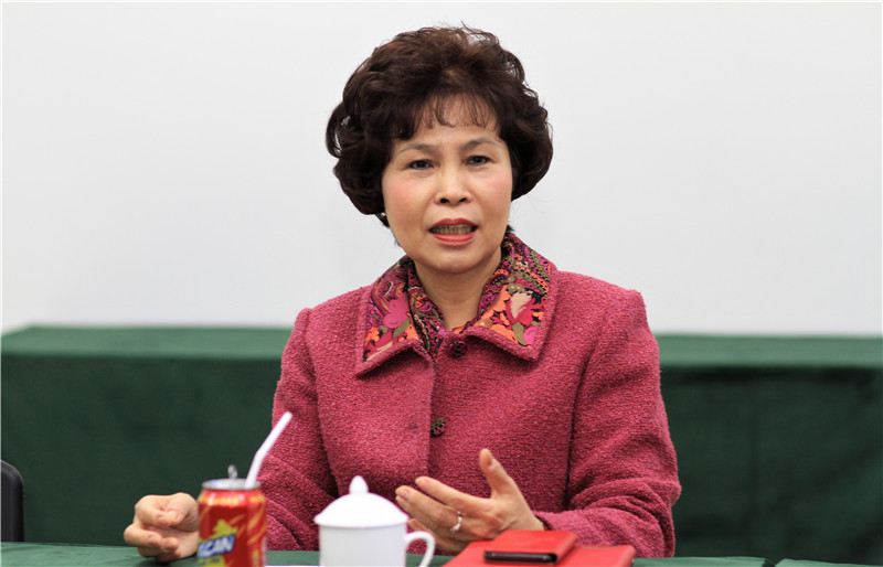 图为福贞金属包装董事长庄素贞介绍企业发展历程