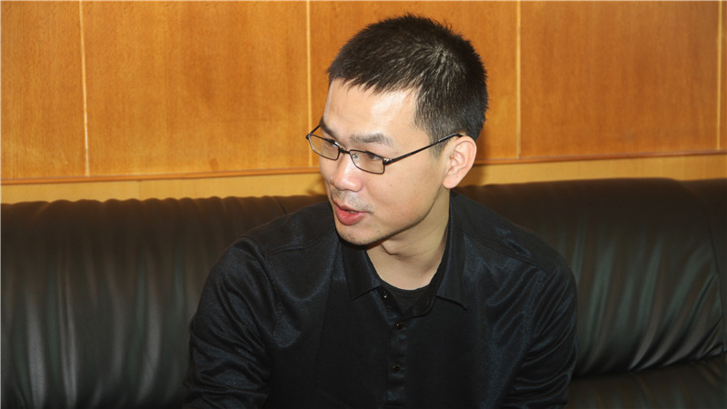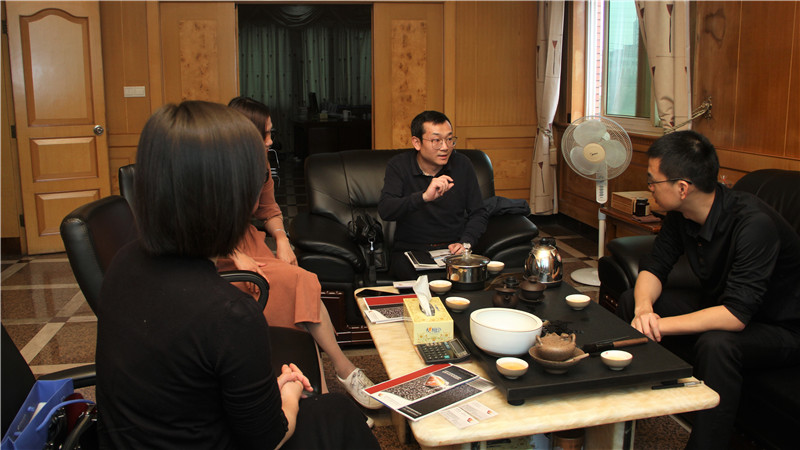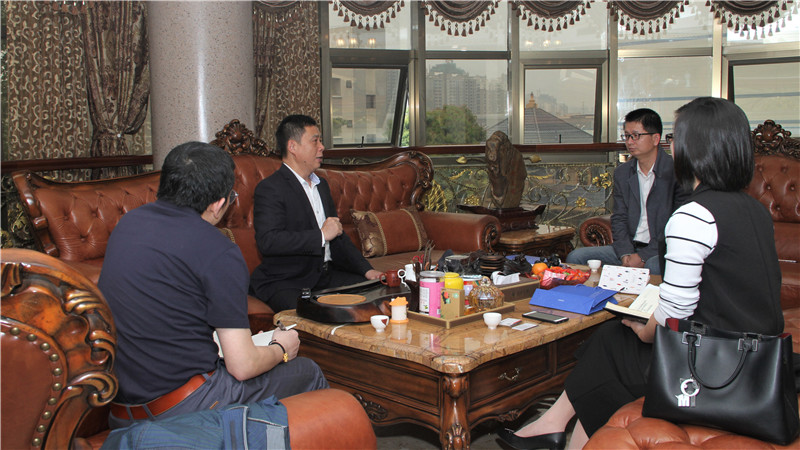 图为皓尔宝董事长朱文明介绍企业发展情况