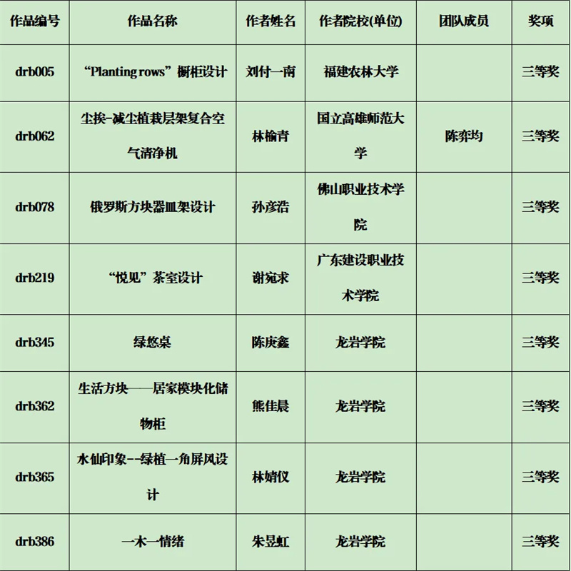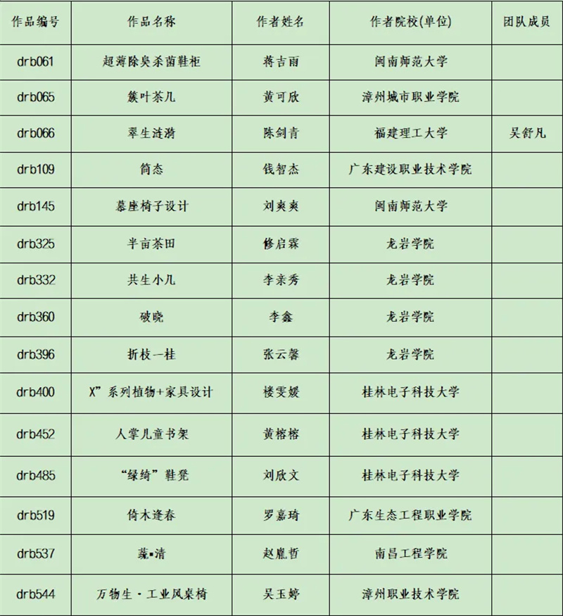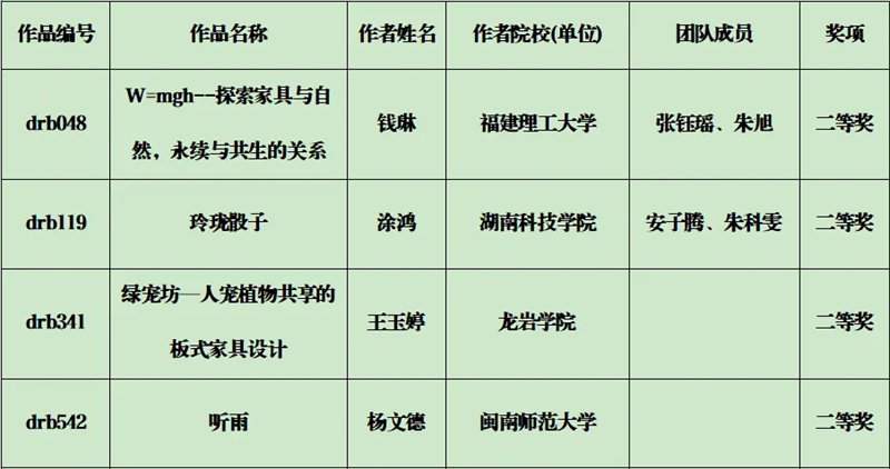 现将首届“东荣杯” 海峡两岸家具工业设计创新大赛获奖名单公告如下: