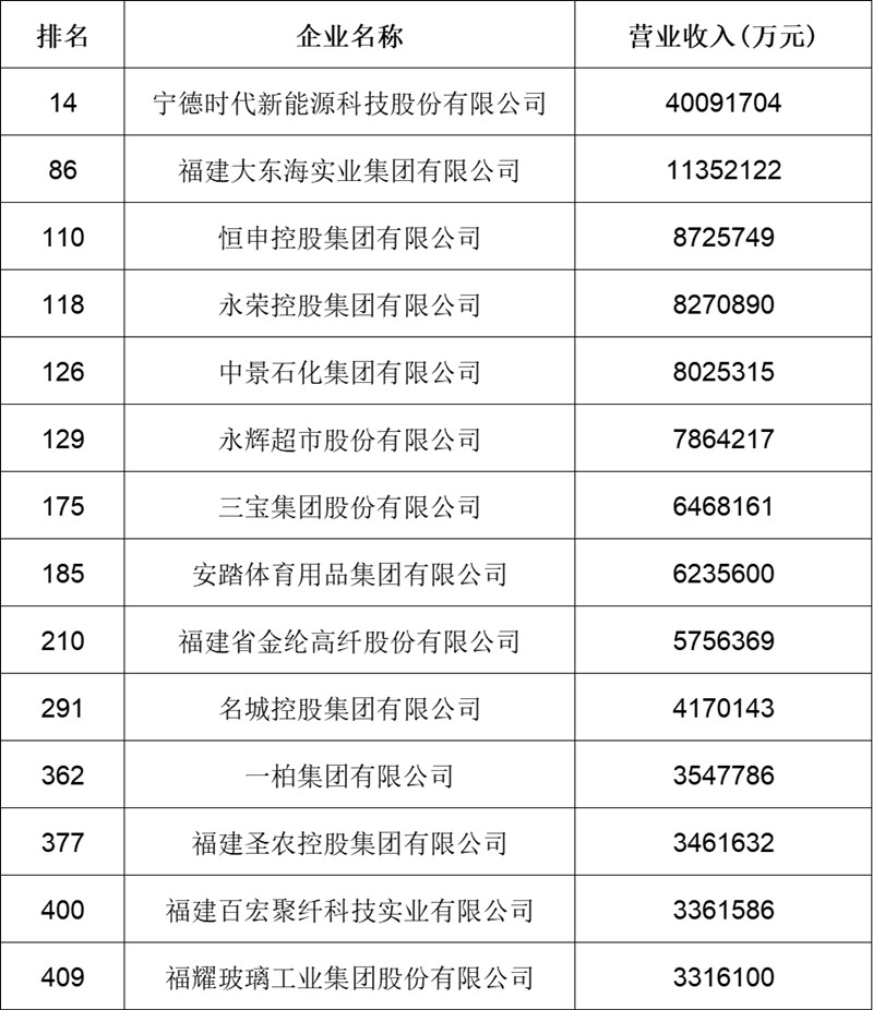 福建14家企业上榜