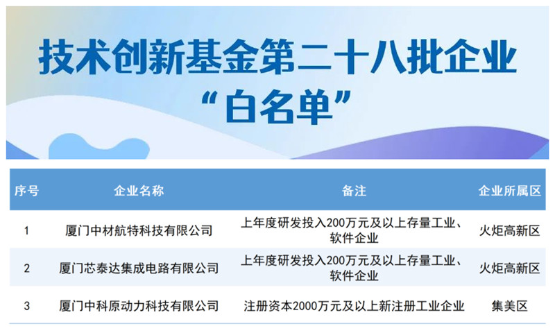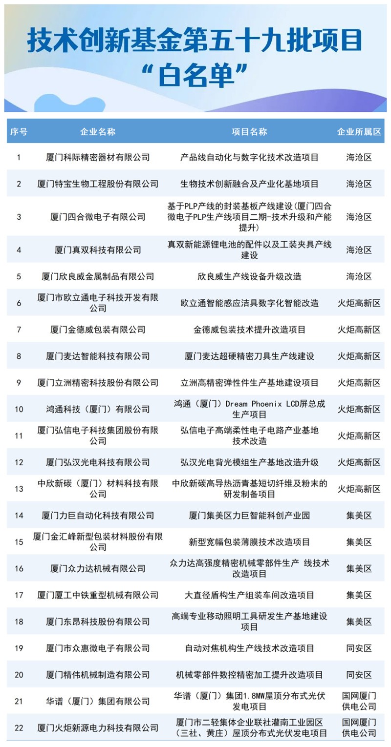 近日厦门市工信局公布新一批“技术创新基金企业及项目白名单”,共有25家企业和项目上榜,彰显厦门市制造业企业在智能化、数字化转型和研发创新方面持续释放强劲动能。